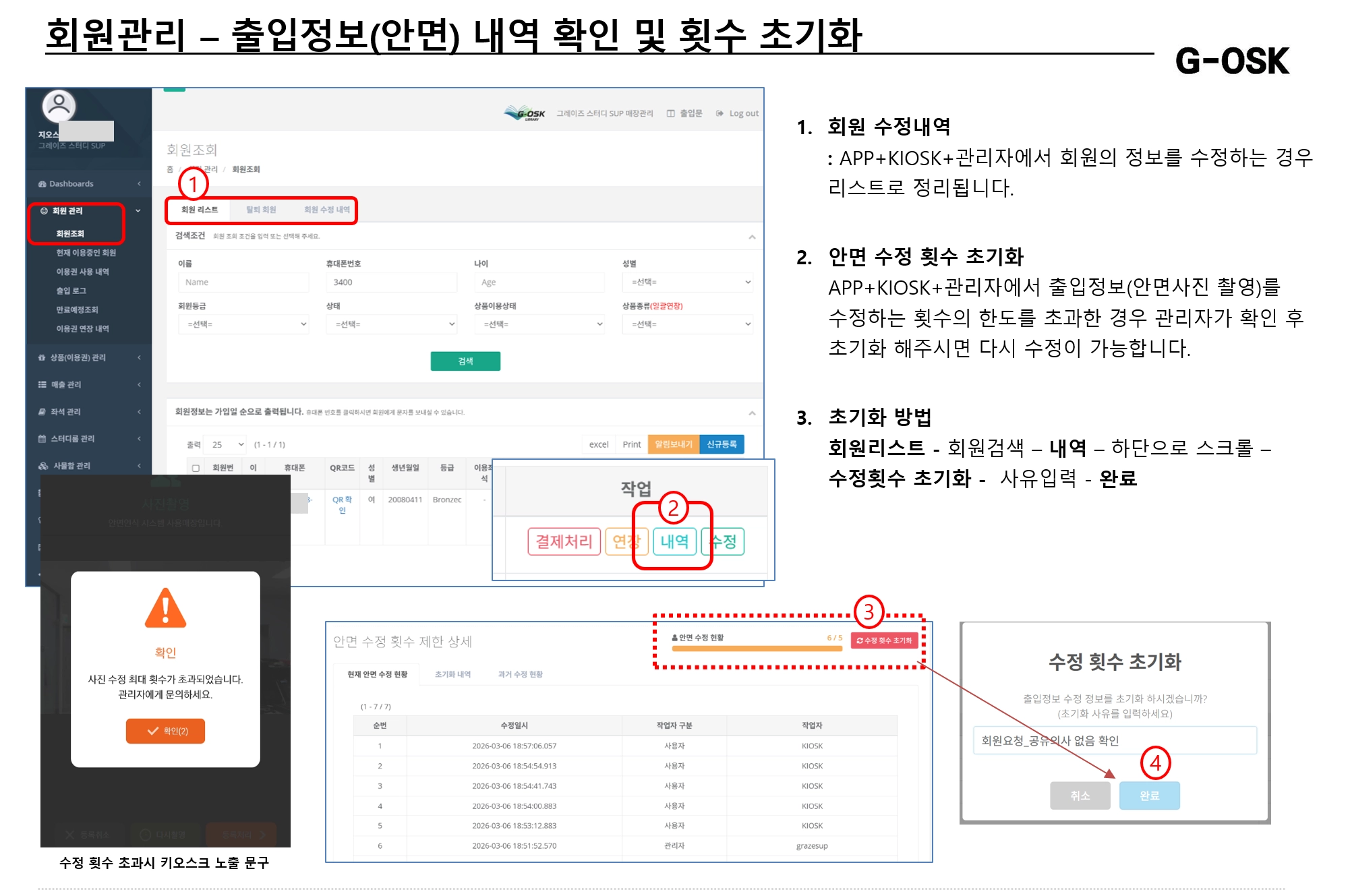 안면사진 수정 횟수 초과시 초기화 방법